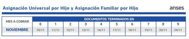 La ANSES informa los calendarios de pago del mes de noviembre para jubilados y pensionados, Pensiones No Contributivas, beneficiarios de la Asignación Universal por Hijo y por Embarazo, de la Prestación por Desempleo y Asignaciones Familiares y de Pago Único (Matrimonio, Nacimiento y Adopción).